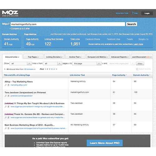 Moz Open Site Explorer – Marketing Artfully