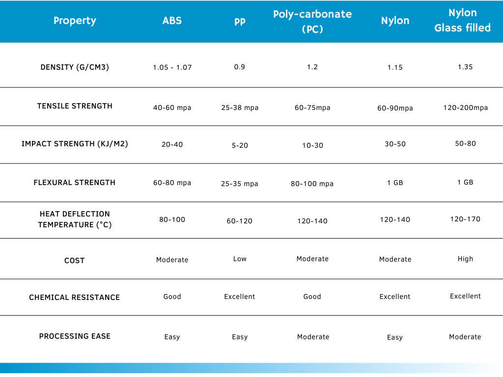Plastic Material Comparison Chart